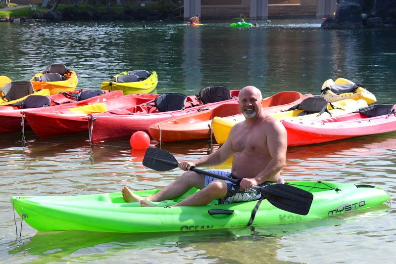 Aloha! With a 24 hour notice Craig & I flew to Kona, Hawaii. Yea, I know… both of our faults for not checking the paperwork a little sooner… with bags packed we arrived on the biggest (and newest) of the Hawaiian Islands. We spent 9 days at the Hilton Waikoloa Village. Realizing that Kona coffee was a product from here, made my coffee experience a whole new thing. Usually I’m a one cup a day girl- but not this week! The grounds here at the Hilton are 62 acres and over the top in landscaping & accommodations. I can safely say that walking took on a whole new meaning, and my newly vein stripped legs were in a little bit of a shock the first couple of days.  I figured that what better way to get them back in shape! There is a tram that is available as well as really cool boats to get you around but sometimes it was just easier to huff it lol. Here is our view from our balcony-