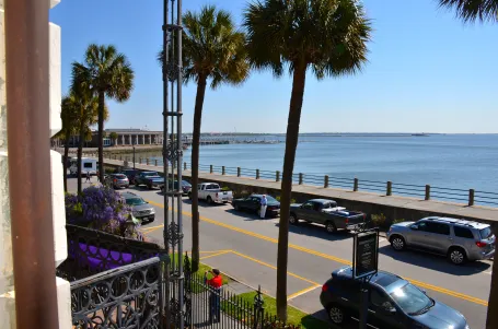 Our next stop was at the Edmondston- Alston House. Unfortunately no cameras were allowed… this was a house in mourning. One of the sons had died 150 years ago -Lieutenant John Julius Pringle Alston. The guides more a black bow, the front of the house had fabric draped across and every mirror was covered in sheer black fabric- superstition dictated that the next person to see his reflection would die. On the first floor right next to the grand staircase was a holding area for the extra leaves for the formal dining room table. All entertaining was done on the second floor because of dust and smells from the then dirt road and animals that every home had (horses, chickens and cows) the table was carried up for parties and the extra leaves would extend the table to seat 24. I was able to take pictures up on the second level from the “piazza” it faced the famous Charleston harbor where at one time up to 300 ships would be waiting to come in for trade along with pirates like Blue Beard. Hard to believe that this house was originally built by a 17 year old immigrant – it took him 5 years.