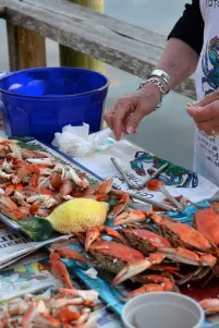 Appetizers consisted of shucking your own oysters and picking crab meat along with some amazing dips and fried green tomatoes. This was really cool out on the patio behind the barn.