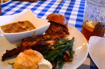 Dinner was served in the barn – shrimp and grits, pulled pork sandwiches, green beans with sugared pecans( my fav!) dry rubbed grilled chicken,corn bread and sweet tea. Dessert didn’t get photographed because I was distracted by key lime pie, chocolate mousse and miniature apricot pies. Trust me, good stuff!