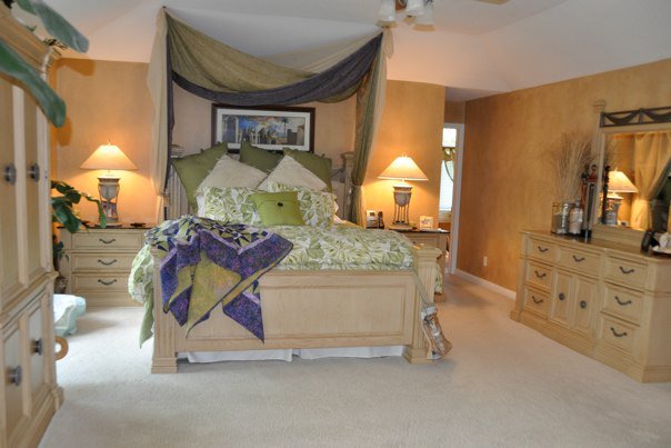 We moved into the new house the day before New Year’s Eve. I was excited to sew window treatments, wallpaper, and faux paint the walls.