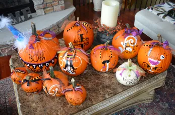 I started these pumpkins two years ago and somehow picked up the name of “The Pumpkin Fairy” HMMMM I guess it fits?!!